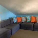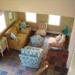 Two living areas include one on the first floor and a loft living area on the second floor. The loft is a great spot for everyone to unwind, with a spacious sectional sofa and a 55″ smart TV, perfect for movie nights. The well-equipped kitchen complements the home’s inviting atmosphere, while the backyard offers a fire pit for evening campfires. The washer and dryer are available seasonally from April through October for your convenience. Located on a quiet road just 30 yards from Woodmere Beach, Just Beachy provides a peaceful retreat without the bustle of traffic, but please note that no pets are allowed
